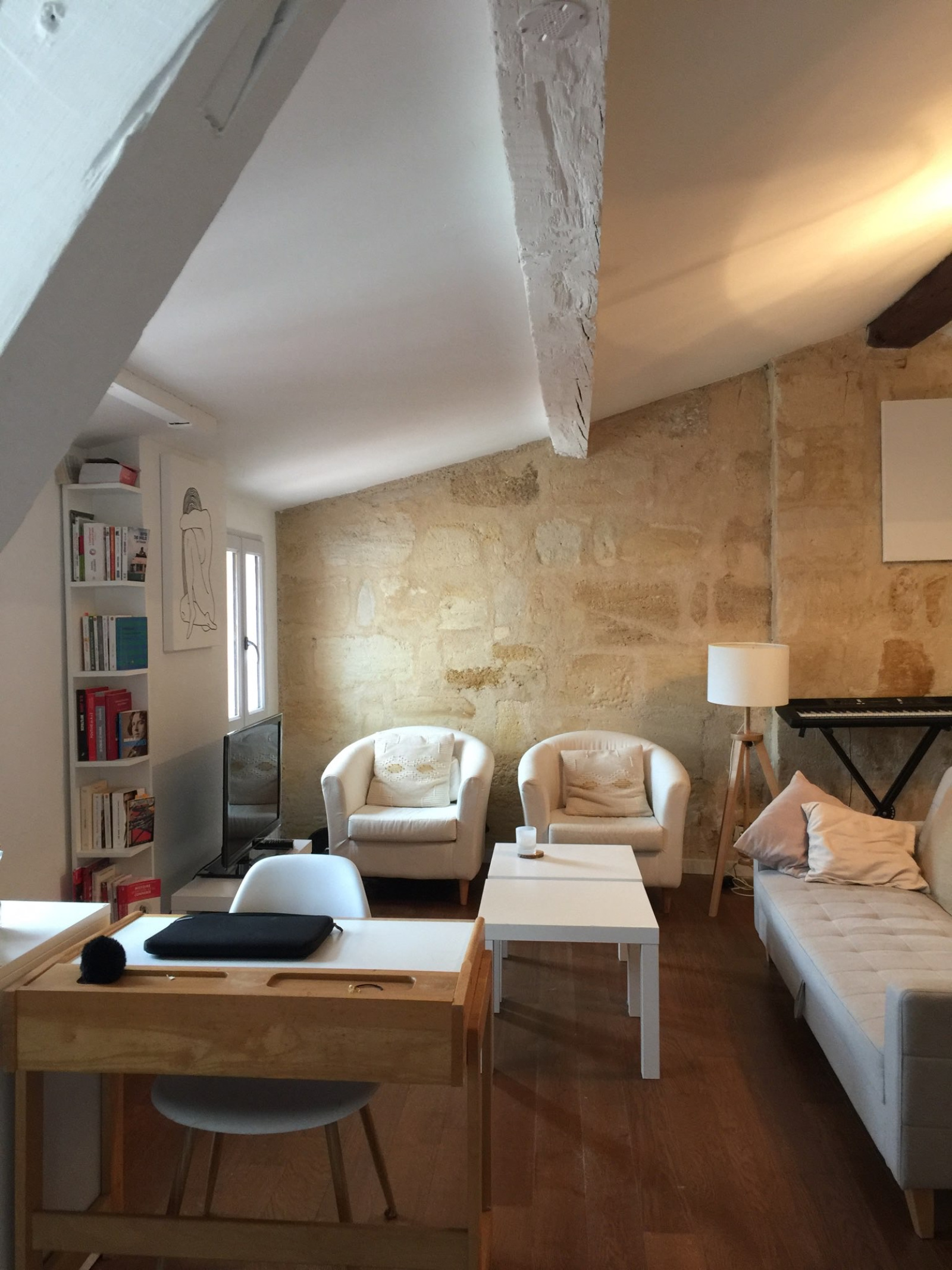 Bordeaux Sainte-Catherine, très beau T2 de 47,75 m2 au 4ème étage d'un immeuble avec ascenseur, comprenant une entrée, une cuisine équipée , un salon/séjour avec balcon, une chambre avec dressing et une salle de bain avec WC.